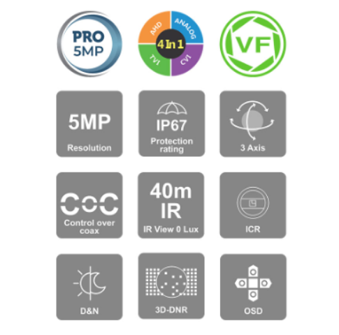 • DI-350A-VF 40m IR 5MP Vari-Focal עדשה גדולה כיפה/צריח אמרה