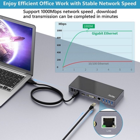 תחנת עגינה אונברסלית אולטימטיבית למחשבים ניידים יציאה ל-2 מסכים נוספים כולל שנאי מתח פרוטק Protec DM190 USB/Type-C Dual Full HD Universal Docking Station