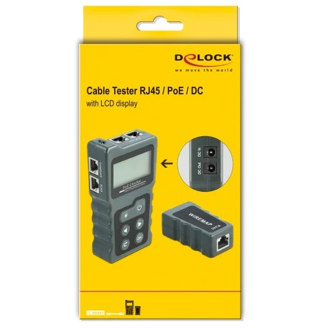 בודק טסטר מקצועי לכבל רשת Delock D63110 LCD Cable Tester RJ45 / PoE / DC