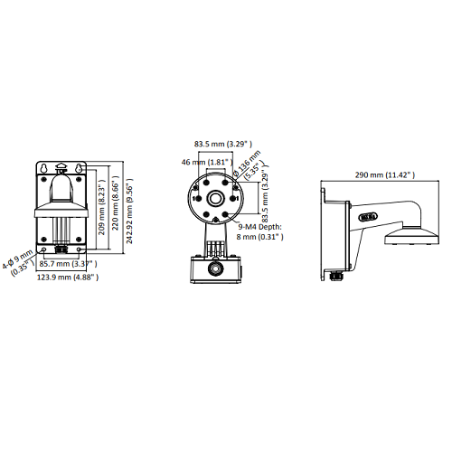זרוע עם קופסאת חיבורים לקיר היקוויז'ן Hikvision DS-1273ZJ-135B Wall Mount With Junction Box For Dome Cameras