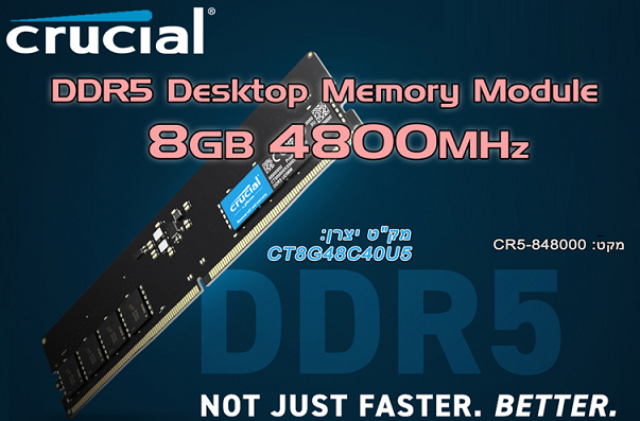 זיכרון למחשב נייח קרושיאל Crucial CT8G48C40U5 8GB DDR5 4800MHz CL40 1.1V