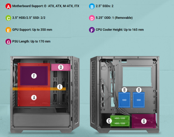 עם כפתור ההפעלה הלבן LED, פתחי אוויר בשפע ותמיכה של מאווררים בגודל 3x140 מ"מ, ה-P7 Neo לא רק מספק לך חוויה שקטה יוצאת דופן אלא גם משפר את הקירור, והוא יענה על הצרכים שלך לסביבת עבודה אידיאלית.