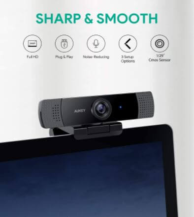 מצלמת רשת כולל מיקרופון סטריאו לשיחות ועידה לשיחות והקלטות וידאו באינטרנט AUKEY Full HD LM1E USB Web Camera