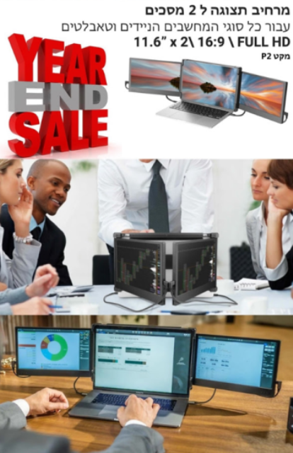 מרחיב תצוגה ל 2 מסכים עבור כל סוגי המחשבים הניידים וטאבלטים בגודל 11.3 אינץ' OFIYAA | P2 | FHD