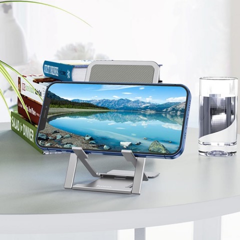 PH43 מחזיק לטלפון שולחני מתקפל, סגסוגת אלומיניום וסיליקון, לטלפון נייד בגודל 4.5-7 אינץ'