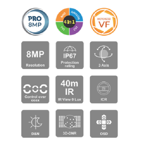 Selectable output-8MP/5MP/4MP 4in1 (AHD / CVI - Excluding 5MP / TVI / CVBS + PAL/NTSC)