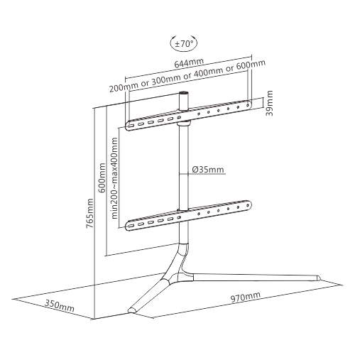 תושבות תמיכה מתכווננות מתאימות לרוב טלוויזיות 45 אינץ'-65 אינץ'.