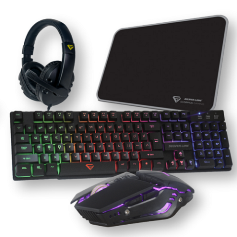 חבילת גיימינג משתלמת הכוללת בתוכה משטח לעכבר SILVER LINE SCORPIUS GMP01 , אוזניות ומיקרופון מבית SCORPIUS דגם HS-88V , מקלדת גיימינג מבית SILVER LINE דגם GKB-209 ו- עכבר גיימינג SL 2400DPI GM804 בעל עיצוב מיוחד עבור הגיימרים .