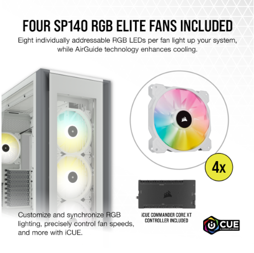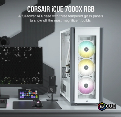מארז מחשב קורסייר לגיימרים לבן ללא ספק Corsair iCUE 7000X Tempered Glass Full-Tower ATX CC-9011227-WW White 140mmX4 Fans