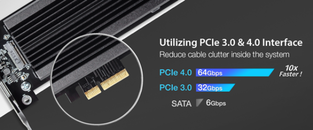 ה-PCIe 4.0 x4 המהיר המהיר מציע מהירות העברה של 64Gb/s מהיר פי 10 מתקני SATA III,
