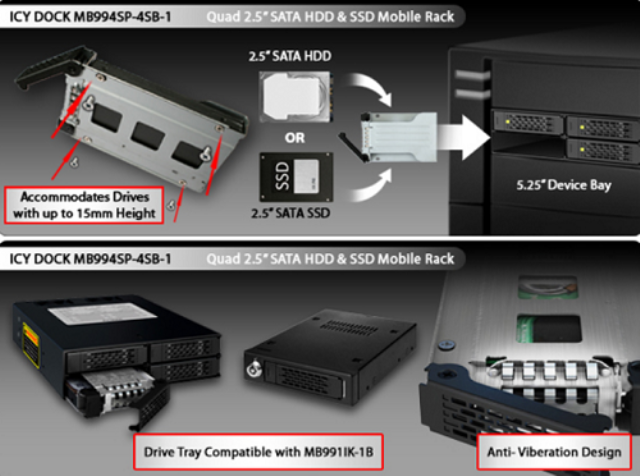 תוך ניצול מקדם הצורה הקטן שלו, ה-MB994SP-4SB-1 מושלם לשימוש במחשבי גיימינג, מקרים קטנים שבהם מפרצי 5.25 אינץ' מוגבלים ויש צורך בקיבולת כונן גדולה או SSD.