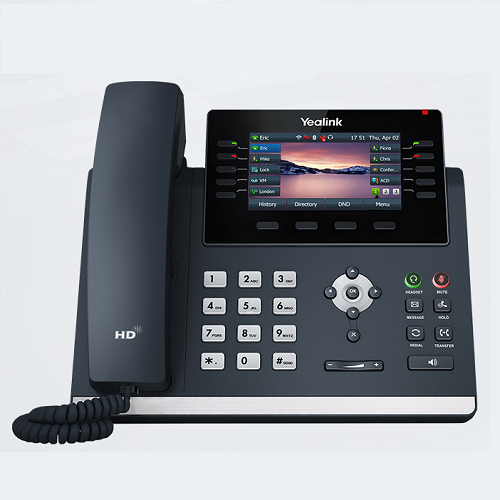 טלפון IP קווי שולחני לעובדי משרד ומקצוענים כולל ספק-כוח מסך תצוגה 4.3 אינץ' ילינק Yealink SIP-T46U IP Phone Productivity-Enhancing SIP Phone for Office Workers and Professionals 2x RJ45 1GbE PoE Class 3 With Power Supply
