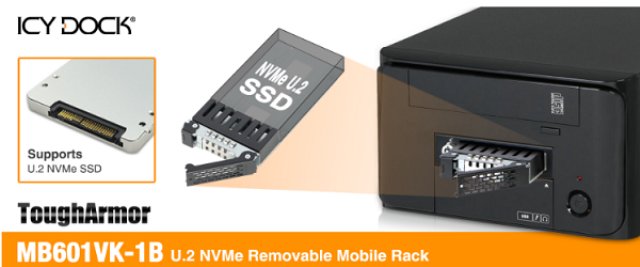 מגירה לדיסק קשיח NVME שליפה מהירה עם נעילה מוקשח Icy Dock ToughArmor MB601VK-1B 2.5'' U.2 NVMe SSD PCIe 3.0/4.0 Mobile Rack for External 3.5'' Drive Bay(168.7mm Depth)