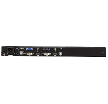 בעוד שיציאות לקונסולת ה-KVM השנייה (מקלדת/עכבר USB ומסך HDMI, DVI או VGA) מסופקות בפאנל האחורי.