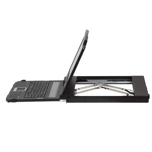 מקלדת ועכבר USB מתאימה לארונות לא עמוקים ולרכבי חפ''ק, כולל מנגנון דו מסילתי לפתיחת מסך בנפרד מהמקלדת.