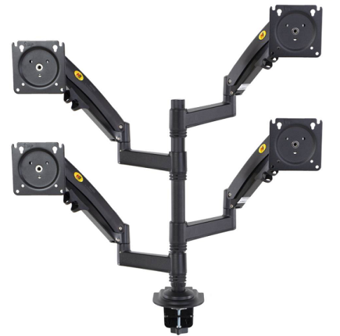 זרוע שולחנית הידראולית גז דו מפרקית ל 4 מסכי מחשב נצמד לשולחן מלחציים (אפשרות הברגה) מתאימה לעבודה במצב אנכי וגם אופקי לגודל מסך עד 27'' עד משקל 9 ק''ג לכל מסך אורך עד 55 ס''מ NB H180x2 LDT66 Pole Gas Strut Dual Desktop Monitor Arm Mount