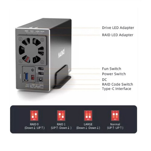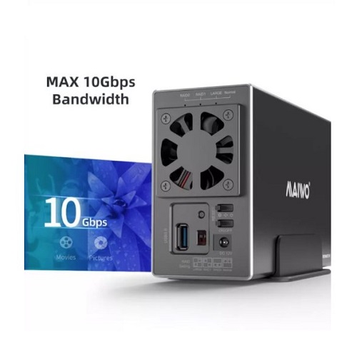 מארז חיצוני ל-2 דיסקים מאיבו MAIWO K35272U3 2 Bays USB3.2 Gen 1 Aluminum RAID Enclosure for 3.5Inch SATA HDD