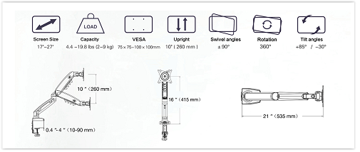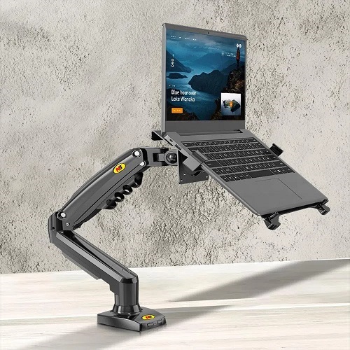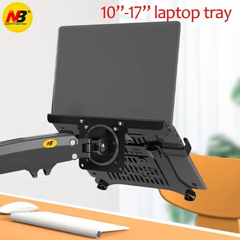 זרוע הידראולית למחשב נייד עד 53.8 ס''מ חיבור לשולחן מלחציים (הברגה) או לקיר מתאים לנייד 11-17 אינצ' NB North Bayou F80 + FP-2 Tray Laptop Workstation Black