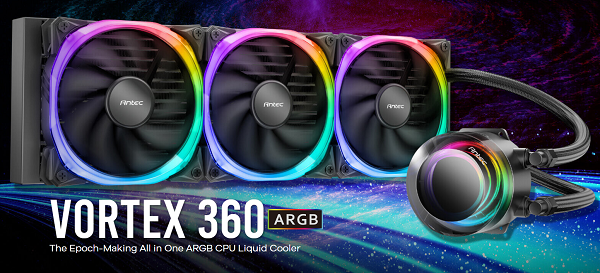 קירור נוזלי למעבד מחשב אנטק Antec VORTEX 360 ARGB 775,115X,1200,1700,AM4 All-in-one Liquid Cooler ARGB Fans 0-761345-74047-0