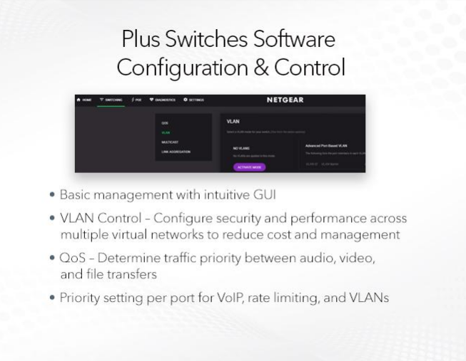 מתג NETGEAR 16-Port PoE+ Gigabit Ethernet Plus מספק תכונות חיוניות של רשת עסקית ומפעיל התקני PoE+ כמו טלפונים VoIP, מצלמות IP ועוד.
