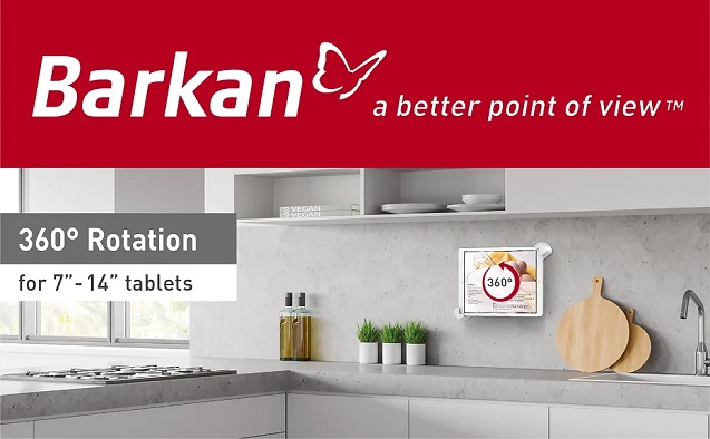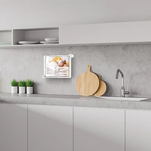 זרוע אוניברסלית קבועה צמודת קיר לטאבלטים תאימות לגדלים 21.5-41Cm בצבע לבן ברקן 360 מעלות לקיר צבע לבן ''Barkan T70 14-7