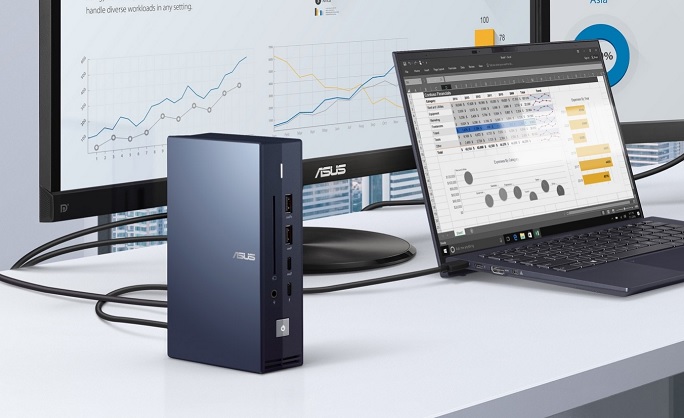 ASUS SimPro Dock 2 הוא תחנת עגינה אלגנטית וקומפקטית המייעל את הקישוריות של מחשב נייד.