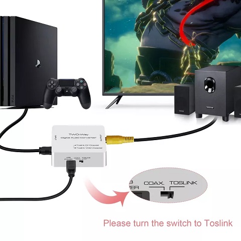 תומך בהמרה דו-כיוונית: קואקסיאלי ל-Toslink או Toslink ל-Coaxial.