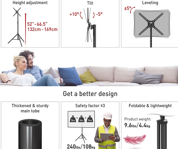 מתקפל בקלות ונוח לנשיאה למקומות שונים כדי לצפות בטלוויזיה, להעביר מצגות ועוד.