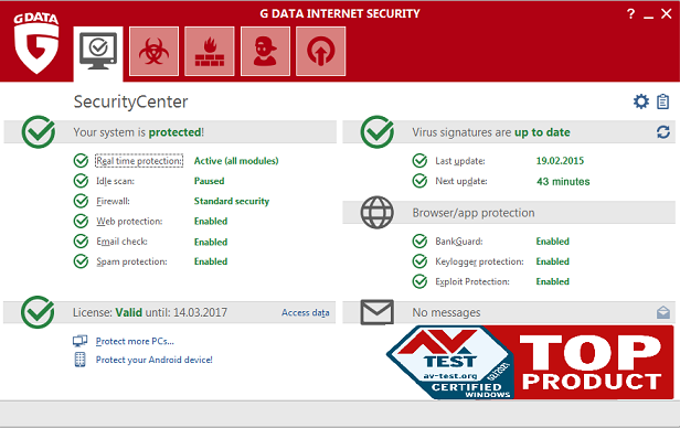 יתרונות מובילים של חבילת G DATA INTERNET SECURITY