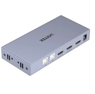 קופסת מיתוג 2 ערוצים 2 מחשבים מסך מקלדת ועכבר אחד כולל סוויטש 4 פורטים USB2.0 יוניטק Unitek V307A HDMI 4K 60Hz KVM Switch 2 In 1 Out 2 Input, 1 Output - Shares 1 HDMI monitor and 4 USB ports