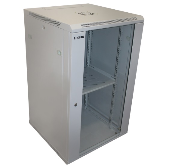 ארון תקשורת תליה לקיר כולל דלת זכוכית עם מנעול לוגר Lugger HI-20U-600-WL 20U depth Wall Mount Rack Cabinet 600x600 Gray