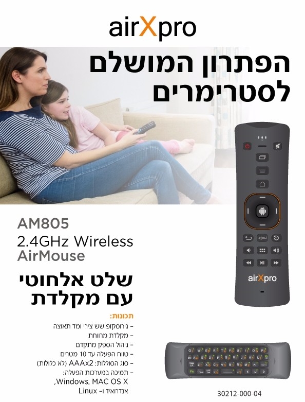 חבילה הכוללת סטרימר ושלט מקלדת משולב אנדרואיד MECOOL KM2 Plus Android TV11 4K Amlogic S905X4-B Quad-Core A55 Amlogic 2GB DDR4 16GB eMMC WiFi AND BT 2R2T Streamer + AM805