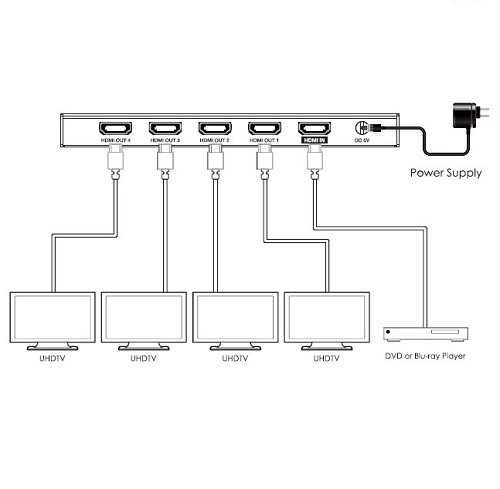 מפצל HDMI מוגבר ספליטר ל-4 מסכים להעברת תמונה ושמע ברזולוציית 4K HDSP04V2 קצב רענון 60 הרץ TOP X HDSP04V2 4K@60Hz 4:4:4 + HDCP2.2 HDMI Splitter