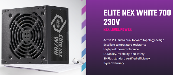 ספק כח למחשב נייח קולר מאסטר Cooler Master ELITE NEX Plus White 80 230V PEAK POWER 700 Active PFC 700W MPW-7001-ACBW-BWO