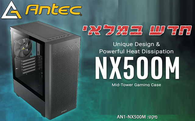 מארז אנטק לגיימרים ללא ספק Antec NX500M ARGB Mini Tower GAMING CASE NO FANS usb Type-C Black 0-761345-81056-2