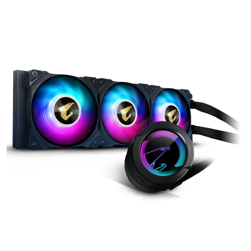 קירור נוזלי למעבד ג'יגהבייט Gigabyte AORUS WATERFORCE 360 All-In-One Liquid Cooler With Circular LCD Display, RGB Fusion 2.0, 120mm ARGB Fans LGA1700