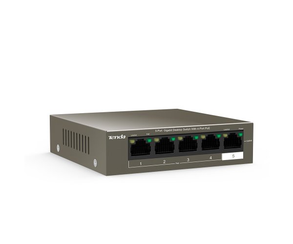 מתג לא מנוהל ג'יגה עם מתח ל-4 ערוצים טנדה Tenda TEG1105P-4-63W 5 Port With 4 PORT POE Gigabit Switch 63W