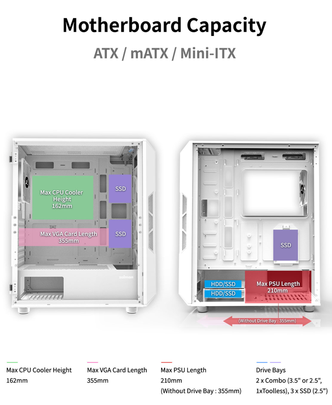 מארז מחשב לגיימרים לבן זלמן Zalman CASE MID TOWER I3 NEO TEMPERED GLASS I3-NEO WHITE