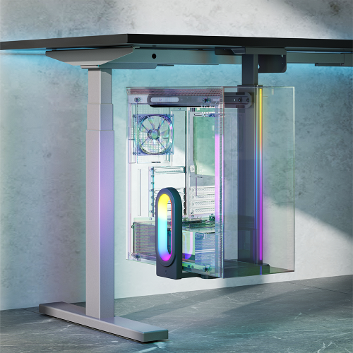 מעמד מנשא למחשב נייח לגיימרים מארז גדול עם תאורה חיבור מתחת לשולחן או לקיר חוסך מקום רב יותר לשולחן העבודה שלך לומי Lumi CPB-26R EASY SET-UP UNDER-DESK/WALL CPU HOLDER WITH RGB LIGHTING