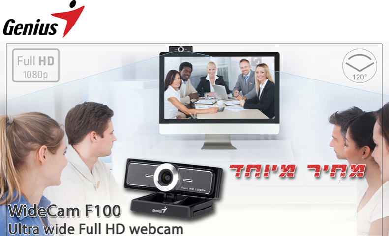 120 מעלות מה שמאפשר כיסוי רחב כך שאין צורך להצטופף מול מצלמת אינטרנט רגילה בפגישה.