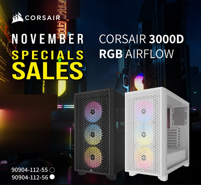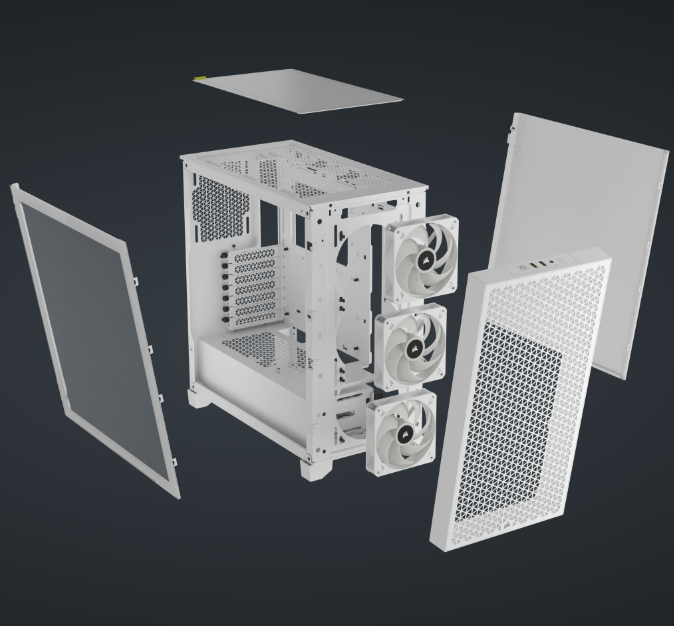 מארז מחשב קורסייר כולל תאורה ללא ספק Corsair CC-9011256-WW 3000D RGB AIRFLOW Mid-Tower PC Case - White ATX Tempered Glass