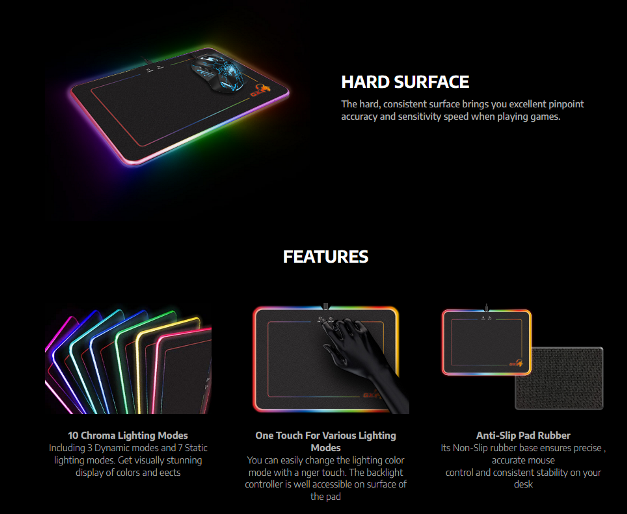 משטח לעכבר גיימרים קשה פלוס תאורה צבעונית RGB ג'יניוס Genius GX-PAD 600H RGB Hard GAMING PAD 350X250MM USB