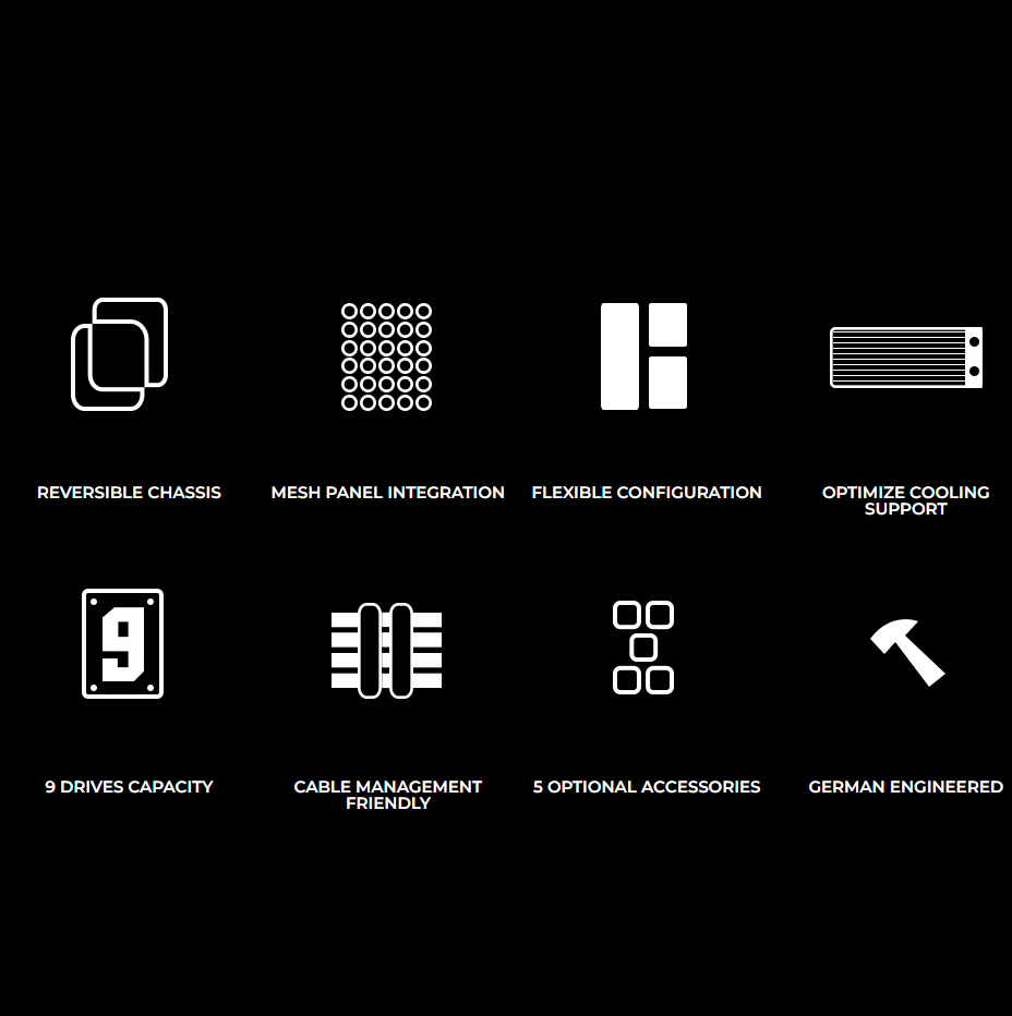 חמישה אביזרים אופציונליים: ערכת GPU אנכית / ערכת GPU זקוף / ערכת I/O נוספת / ערכת רשת קדמית / ערכת I/O עליונה