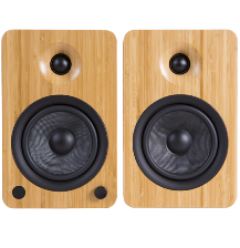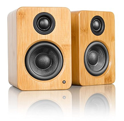 זוג רמקולים מוגברים מפוארים מעץ אלחוטים למחשב צבע במבוק קאנטו Kanto YU6 Powered Speakers with Bluetooth and Phono Preamp 200Watts Bluetooth Bamboo