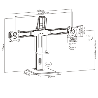 הטיה של +45°~-45° קדימה ואחורה והסיבוב +40°~-40° בשילוב עם יכולת דיוקן לנוף מגבירים את הפרודוקטיביות והפונקציונליות. יתרה מכך, בסיס מסתובב של +40°~ -40° מספק נוחות עבור סביבת עבודה משותפת ושיתוף מידע.