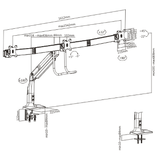 הזרוע גם מספקת מגוון רחב של תנועה כולל הטיה, סיבוב וסיבוב, המאפשרת למשתמש להשיג יציבה מושלמת בזמן העבודה.