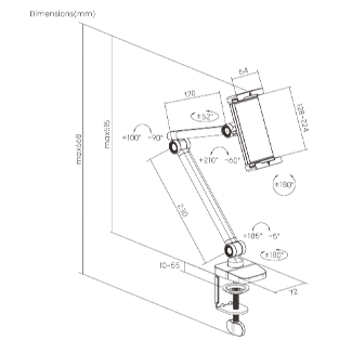 מעמד זרוע שולחנית חיבור מלחציים לסמארטפון או לטאבלט 4.7 עד 12.9 אינץ' מתכוון כולל כיוון גובה 360 מעלות סיבוב Lumi PAD39-03 SIMPLICITY UNIVERSAL PHONE/TABLET CLAMP MOUNT