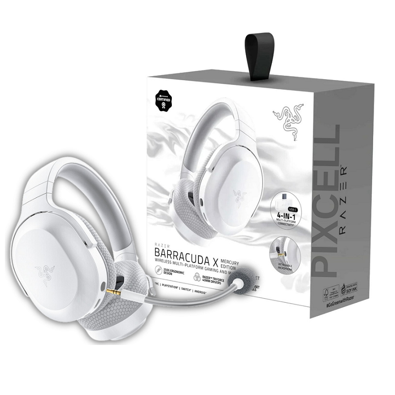 אוזניות גיימינג אלחוטיות עם מיקרופון רייזר ברקודה בצבע לבן Razer Barracuda X 90903-011-30 Multi-Platform Wireless Gaming Headset White