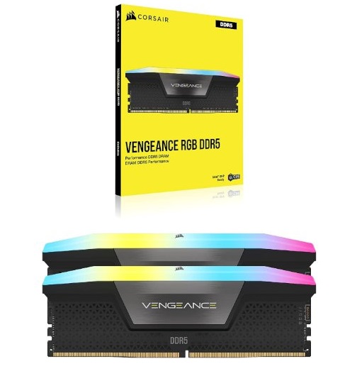 קיט זכרון למחשב נייח די.די.אר 5 כולל צלעות קרור מאלומיניום קורסייר Corsair Vengeance RGB 64GB 6000MT/s DDR5 CL38 32GBx2 Kit CMH64GX5M2B6000C38 Intel XMP