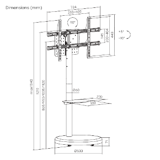מתאים לטלוויזיות עד 86 אינץ' ומשקל של עד 50 ק"ג/110 פאונד במגוון הגדרות.